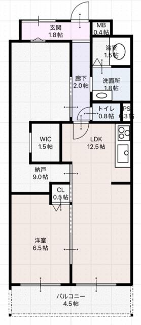 | 間取り | 1SLDK | 間取り内訳 | 洋6.5畳 S9畳 |