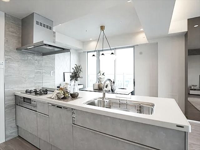 | 設備 | 温水洗浄便座、システムキッチン、カウンターキッチン、浄水器、食器洗浄乾燥機、ディスポーザー、収納スペース、ウォークインクローゼット、室内洗濯機置場、エレベーター、照明器具、宅配BOX、複層ガラス、エアコン、床暖房、BS端子、CATV、CS、オートロック、モニタ付インターホン、ディンプルキー、防犯カメラ、24時間セキュリティー、二面バルコニー、納戸+リビング+各居室に収納有り、オートバス機能付き、各階ゴミステーション有り24時間ゴミ出しOK、各居室に窓有り、各居室6帖以上 | ||