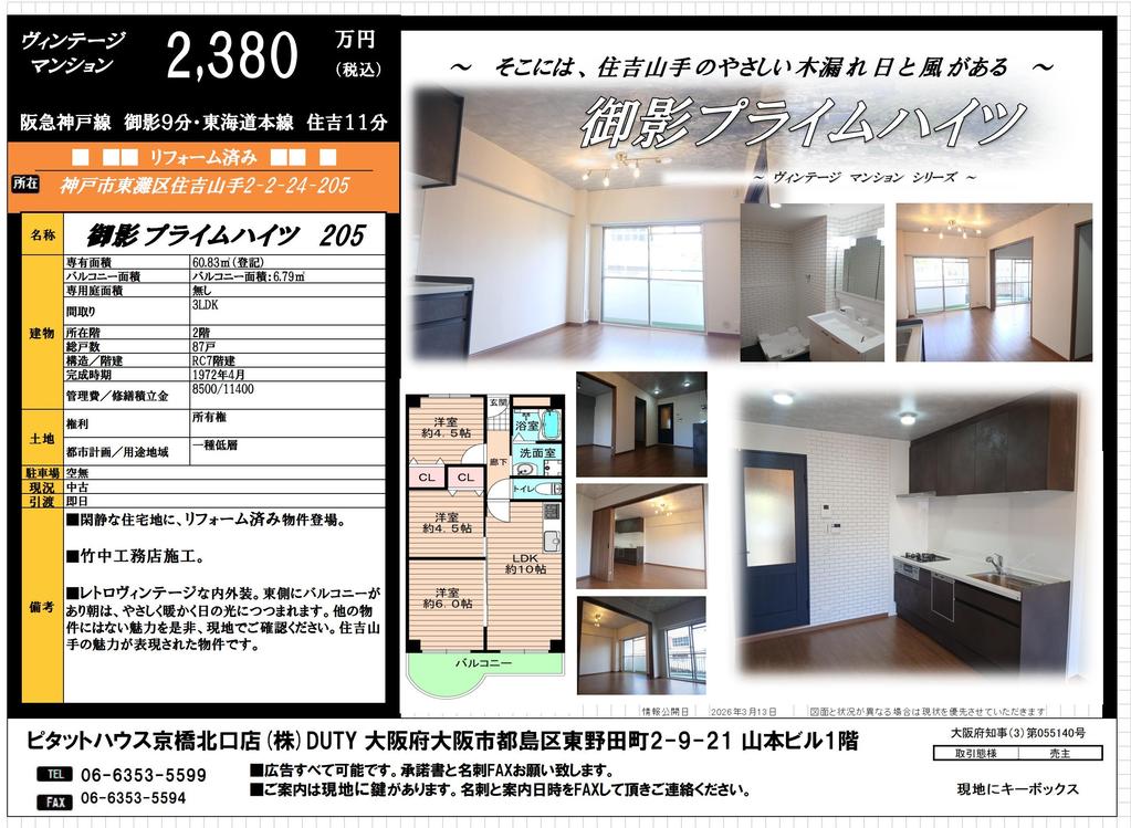 | 所在地 | 神戸市東灘区住吉山手2丁目2-24-205 御影プライムハイツ 205 | ||