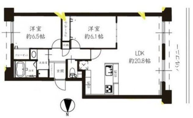 | 間取り | 2LDK | 間取り内訳 | LDK20.8畳×1室 洋6.1畳×1室 洋6.5畳×1室 |