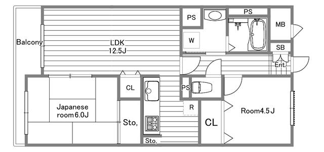 | 間取り | 2LDK | 間取り内訳 | LDK12.5畳 和6畳 洋4.5畳 |