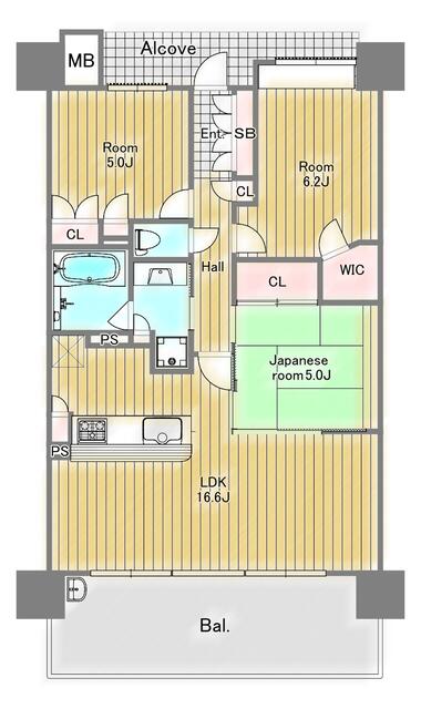 | 間取り | 3LDK | 間取り内訳 | LDK16.6畳 和5畳 洋6.2畳 洋5畳 |