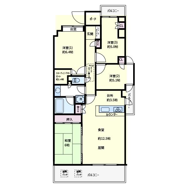 | 間取り | 4LDK | 間取り内訳 | 洋5畳 洋6.4畳 洋5.1畳 和6畳 LDK16畳 |